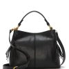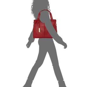Fashioned of soft pebbled leather. this tote is cut with a contoured topline and box pleat. Zip gussets with tasseled pulls allow for easy expansion. The bag’s detachable leather fob and logo plate add movement and a hint of shine.