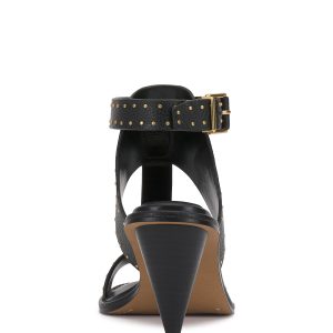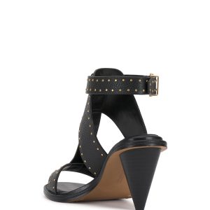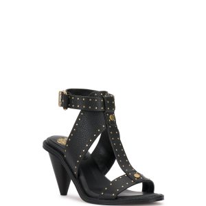 Upgrade warm weather looks with edgy sophistication with the Faunie sandal. Microstuds embellish the trim of the thick t-strap while the cone-shaped heel brings a modern finish.
