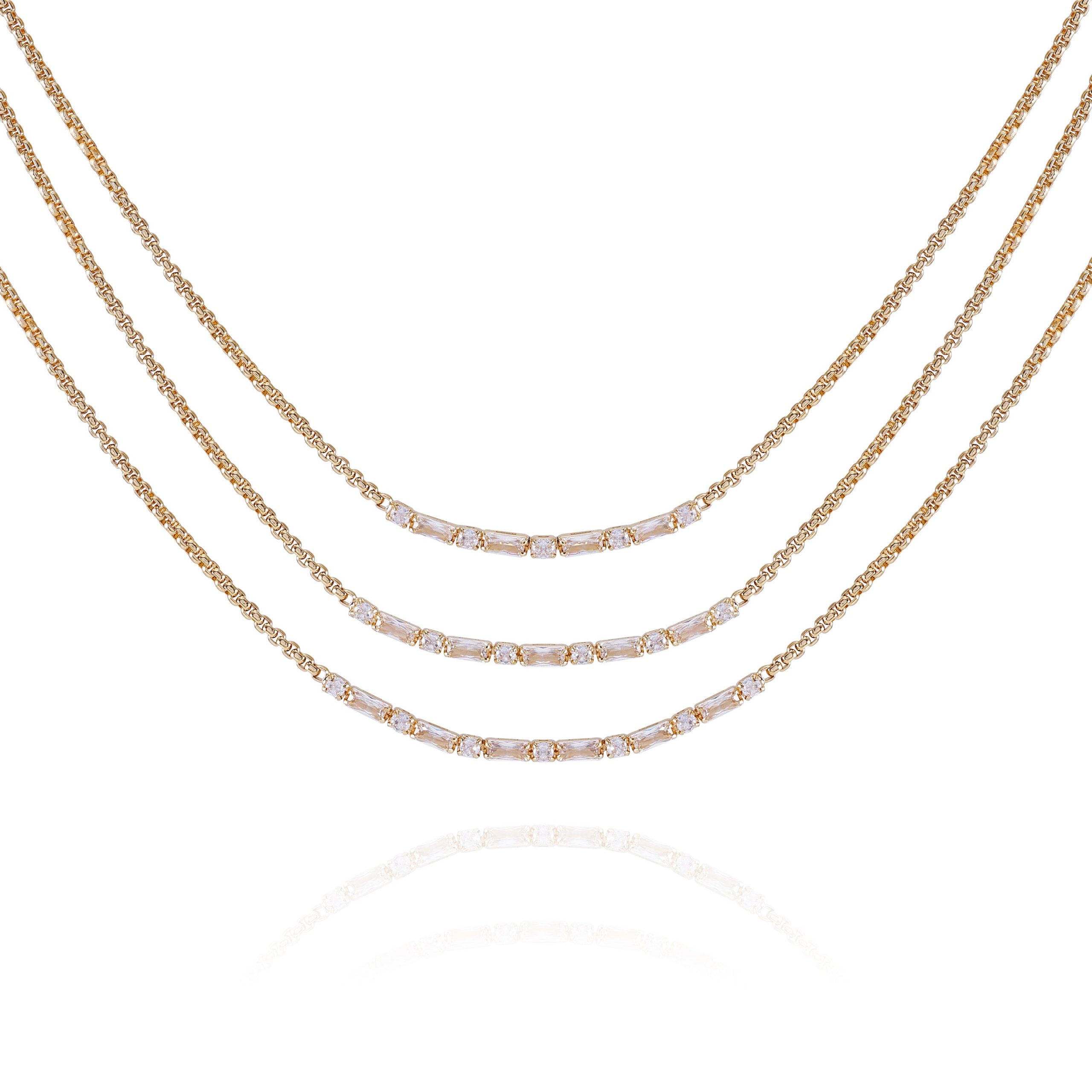 Goldtone Crystal Stone Multi Layered Necklace