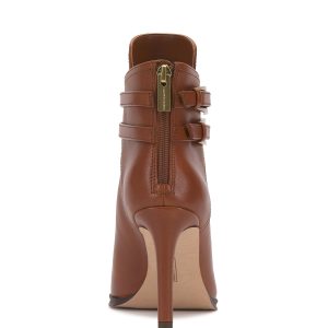The Sahra bootie flaunts sophistication from every angle. The double gold-toned buckles pop against the smooth leather upper while the towering stiletto makes a stylish statement.