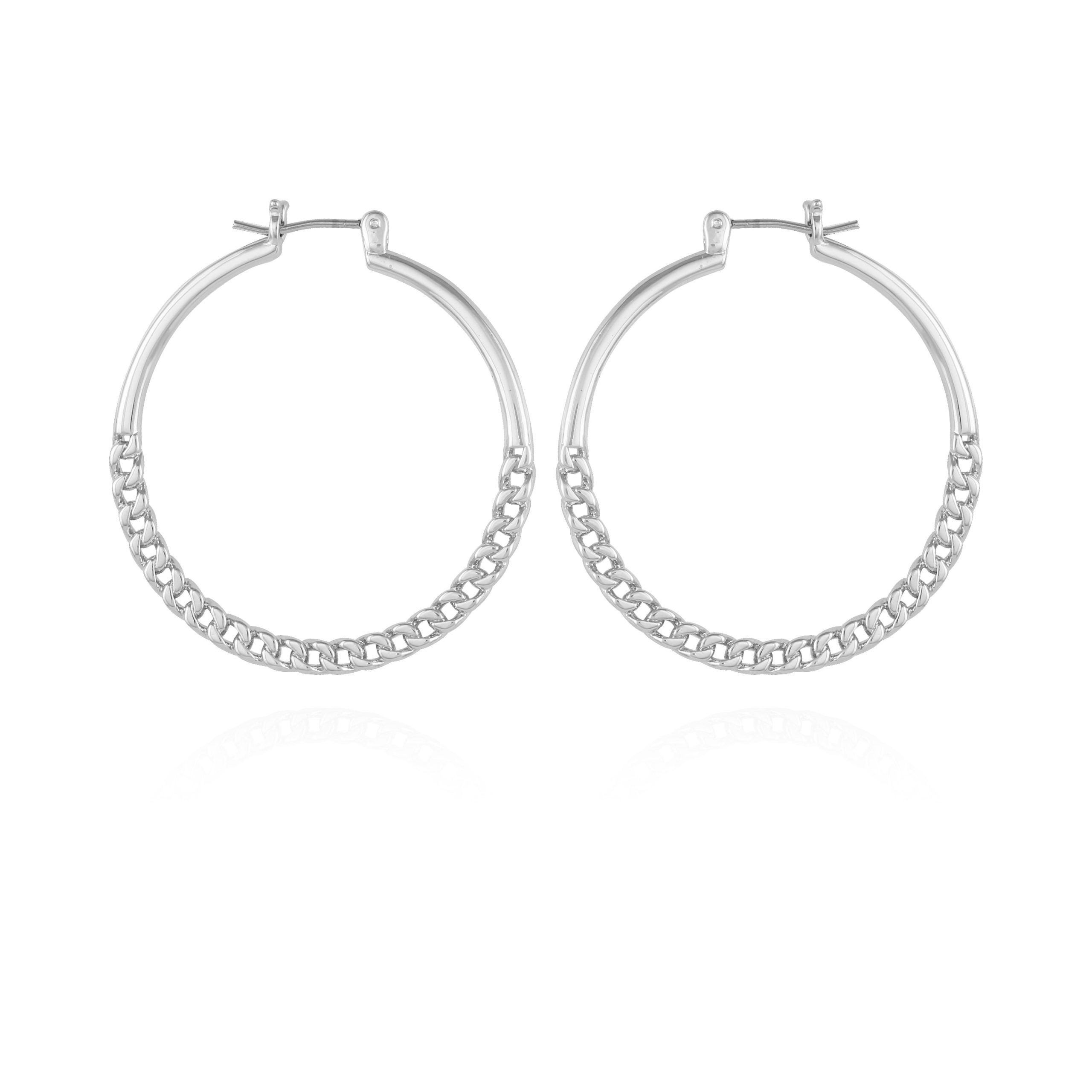 Silvertone Chain Link Hoop Earrings